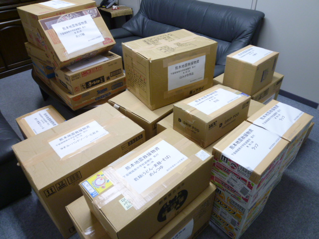 We donated items of necessities of life (Such as food and daily goods ), to provide support for evacuation areas (Shimomashiki- Jonan Junior high school, Kumamoto city, Kumamoto prefecture ) after the Kumamoto Earthquake on 4th April 2016.